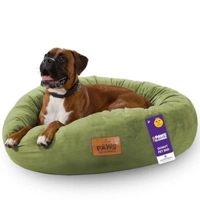 ManoManoIntroducing the Paws for Slumber Donut pet bed, designed for pets who love to curl-up and snuggle in. Available in three gorgeous colours, this (small, medium, large, XL). Generously filled with springy hollowfibre and wrapped in a luxurious plush cover, the Paws for Slumber Donut Beds features cosy deep sides for extra comfort, creating a cozy retreat for your pet to snuggle and relax. COSY DOUGHNUT DESIGN: cosy deep sides provide additional comfort and promote a safe space for you pet to relax and unwind. MULTI-USE: the bed is a great addition to your home, however it can be just as useful outdoor on the patio or even in the car. EASY CLEAN: featuring a soft removable cover, this Slumberdown Doughnut Bed can be machine washable at 40 degrees so you can clean away muddy paw prints or anything else to keep their pet bed looking & smelling fresh. ANTI SLIP BASE: no need to worry about your energetic four-legged friend sliding their bed, the intelligent anti-slip base ensures you pets