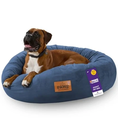 ManoManoIntroducing the Paws for Slumber Donut pet bed, designed for pets who love to curl-up and snuggle in. Available in three gorgeous colours, this (small, medium, large, XL). Generously filled with springy hollowfibre and wrapped in a luxurious plush cover, the Paws for Slumber Donut Beds features cosy deep sides for extra comfort, creating a cozy retreat for your pet to snuggle and relax. COSY DOUGHNUT DESIGN: cosy deep sides provide additional comfort and promote a safe space for you pet to relax and unwind. MULTI-USE: the bed is a great addition to your home, however it can be just as useful outdoor on the patio or even in the car. EASY CLEAN: featuring a soft removable cover, this Slumberdown Doughnut Bed can be machine washable at 40 degrees so you can clean away muddy paw prints or anything else to keep their pet bed looking & smelling fresh. ANTI SLIP BASE: no need to worry about your energetic four-legged friend sliding their bed, the intelligent anti-slip base ensures you pets