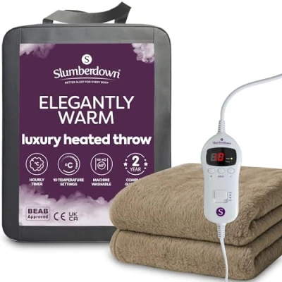 Snug Warmth for Winters - Wrap yourself around this ultra-soft faux mink fleece heated blanket for an instant comfort, with 10 heat settings, it is made to keep you warm without overheating - perfect for chilly nights, movie nights, or working from home. Energy Efficient & Eco-Friendly - Worried about rising energy bills? Good news, our luxury fleece blanket costs as little as pennies per hour to run, keeping you warm all night without the big bills. A cosy, budget-friendly alternative to central heating. For your Peace of Mind - This fleece throw is made with a 10-hour timer and auto shut-off so you can relax or fall asleep safely without worrying about turning it off. Includes a 3m long cord for flexible use on your bed, sofa or favourite chair. 2-Year Guarantee - Designed with comfort and craftsmanship in mind, every Slumberdown electric blankets are made to the highest standards with exceptional attention to detail, and backed by a full 2-year guarantee for peace of mind. Non-Allergenic & Easy Care - Our bed throws are made with high quality, non-allergenic materials which are unlikely to trigger any allergies. The bed throw is machine washable at 40°C and tumble dryer safe for convenience.