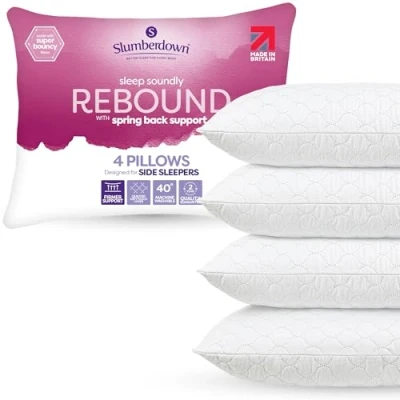 Slumberdown Hotel Quality Pillows 4 Pack Bouncy Firm Support Side Sleeper Pillow for Neck, Back & Shoulder Pain Relief Comfy, Soft Touch Quilted Cover, Hypoallergenic, Made in the UK (48 x 74cm)