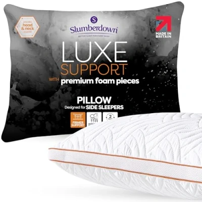 Slumberdown Luxury Crumb Pillow Hotel Quality, Firm & Breathable Bed for Side Sleepers UK Made, Quilted Cover with Gusset, Non Allergenic, Washable (43 x 69cm)