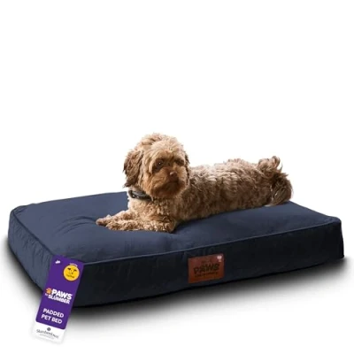 AmazonSlumberdown Luxury Padded Dog Bed Medium (60 * 80 * 20cm) - Supportive, Cushioned & Washable Crate Mattress for Puppies, Dogs & Cats | Orthopedic, UK-Made, Non-Slip Base, Navy