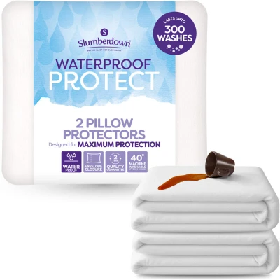 Slumberdown Waterproof Pillow Protectors 2 Pack Silent & Breathable Terry Cover, Super Absorbent Spill Proof, Durable Up to 300 Washes Envelope Closure, Non Allergenic, Washable (50 x 75cm)
