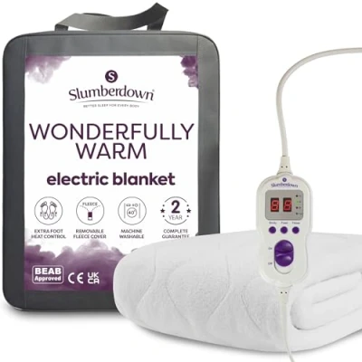 Slumberdown Wonderfully Warm Electric Blanket Superking Dual Control 9 Heat Settings Luxury Heated Fleece for Bed with Auto Timer Easy Fit, Comfortable, Machine Washable (160cm x 170cm)