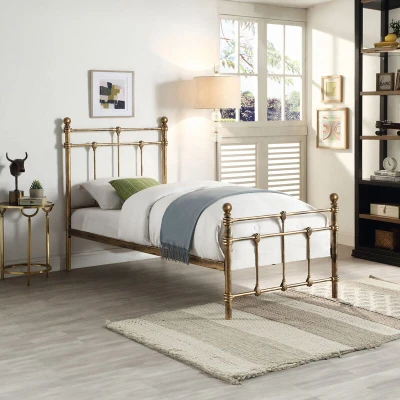 SlumberWorx BAYFORD TRADITIONAL BRUSHED ANTIQUE BRASS METAL BED FRAME SINGLE/SMALL DOUBLE/DOUBLE/KING SIZE WITH MATTRESS OPTIONS (No Mattress, Single)