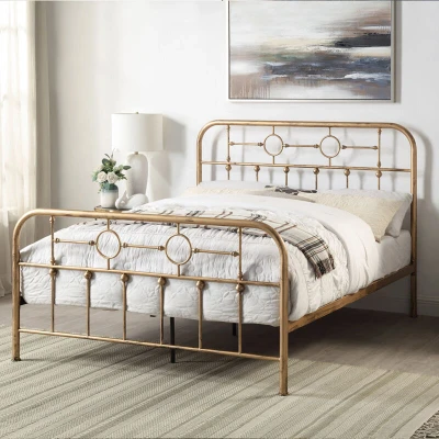 SlumberWorx WARE METAL VICTORIAN INDUSTRIAL BED FRAME DOUBLE/KING SIZE (Brass, Double)