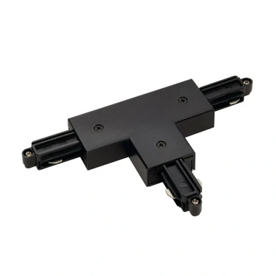 Lights.coT-connector in black for SLV single-circuit surface-mounted track This T-connector enables several tracks of the SLV single-circuit track system to be joined together. This gives you significantly more flexibility and allows you to elegantly avoid corners. The connector is made of plastic and has a power feed option - earth right - maximum 16A
