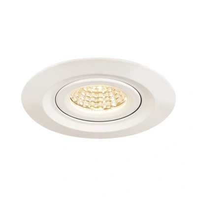 The dimmable KINI recessed ceiling light impresses with its simple appearance. Rated IP65 it can be used outdoors or in damp areas. It is available in white with a round shape. Equipped with a powerful warm white LED in a swivelling mount and the LED driver included in the scope of supply the set can be used in any lighting situation. The electrical connection is made directly to the 230V mains supply.
