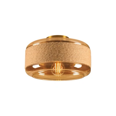 Pantilo Rope 27 Wall/Ceiling Light Gold has an accomplished design concept that both beautifies the interior and enriches the room with pleasant lighting and an atmospheric glow. The lamp is the result of a fruitful collaboration between designer Susanne Uerlings and German lighting manufacturer SLV. It has a captivating visual appearance with a rounded lampshade in tinted glass and a surface pattern formed by tightly bound hemp rope that forms a beautiful design highlight. The matt surface of the rope against the shiny glass creates an interesting contrast while remaining consistent in its colour and shape scheme, creating a balanced and harmonious overall impression.