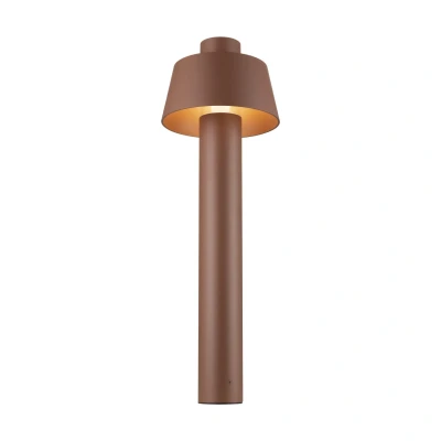 Photoni 75 Bollard Rust is an entire range of outdoor lights with a particularly robust design that is equipped to withstand all kinds of weather and provide reliable lighting all year round. The range consists of wall lights, ceiling lights and bollards in several different colour variants, all approved for outdoor use. The lamps all have the same simple design language. The conical lampshade ensures soft and pleasant lighting, while the inner diffuser spreads the light out in a uniform glow. As the lampshade is open at both ends, it creates a pleasant, two-part lighting and a beautiful overall light pattern. The lamp has an IP65 rating, which provides the best possible protection against the effects of various weather conditions, ensuring a long-lasting lighting solution that lasts year after year. The matching design makes it easy to combine the lamps to create a consistent lighting concept.