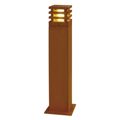 The directly radiating floor stands of the RUSTY SQUARE series convince by their exceptional rust look. This is achieved by a special chemical treatment of the FeCSi steel used which produces a controlled rust layer on the surface which protects the actual material from further corrosion. This makes the luminaires unique pieces and an absolutely special feature wherever they are installed. With protection class IP55 they are suitable for outdoor use. As an option an earth spike as well as a connection box for safe electrical connection are available within the bollard. The electrical connection of the versions available is made to the 230V mains supply.