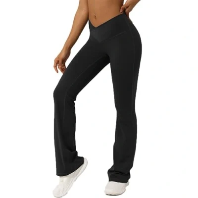 SLVWG Bootcut Yoga Pants for Women,High Waist Crossover Flared Leggings Wide Leg Bottom Bootleg Tummy Control Workout Gym Casual Work Flare Trousers (UK, Alpha, S, Slim, Regular, Black)
