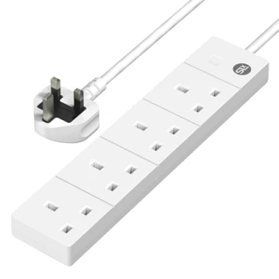 SLx Extension Lead 2m 4 Way Gang Mains Power Strip with 13A UK Plug & 3 Pin Sockets Wall Mountable Cord for Home, Office or Garage White