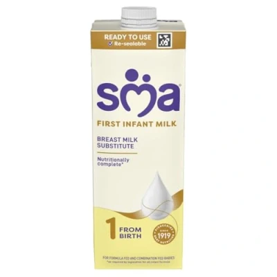 SCIENCE INSPIRED BY NATURE: Our expert team at SMA Nutrition is dedicated to understanding the complex structure of breast milk and applying the learnings from nature to our own products. We have been leading research in baby nutrition for over 100 years and have over 70 years breast milk research SMA PRO First Infant Baby Milk is a nutritionally complete* breast milk substitute, which contains DHA (Omega 3)* and is suitable from birth. *As required by the legislation for all infant formula Convenient for on-the-go, SMA PRO First Infant Baby Milk ready to use liquids do not require any preparation, just shake and pour into a sterilised bottle Easy to pour, our First Infant baby milk formula is in a resealable carton and can be stored in the fridge for 48 hours once opened Suitable for a Halal diet. No palm oil. When your baby is 6 months old you can move to SMA PRO Follow-on Baby Milk, designed to meet your baby's changing needs