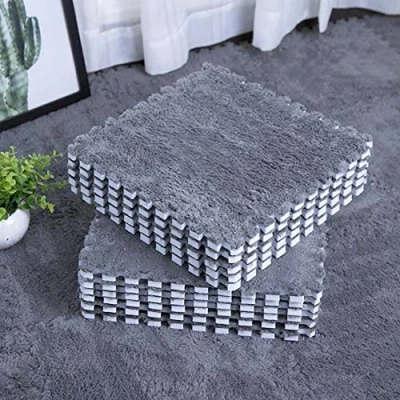 smabee Interlocking Carpet Shaggy Soft EVA Foam Mats Fluffy Area Rugs Protective Floor Tiles Exercise Play Mat for Children Kids Room Home Parlor Bedroom (12 pcs, Gray)