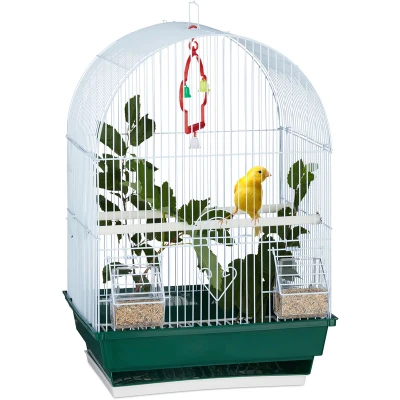 Small Birdcage, Budgies, Canaries, Perch, Bowl, HxWxD 49.5 x 34.5 28 cm, White/Greem Relaxdays