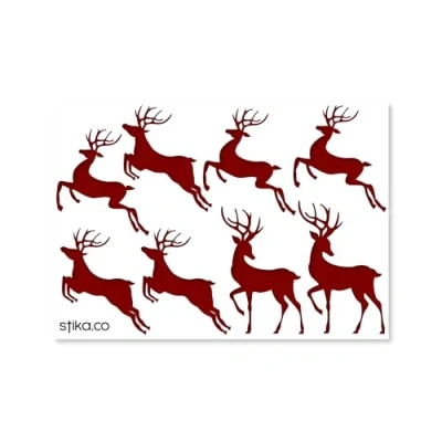 Small Burgundy Reindeer Silhouettes Wall Decals, Christmas Decoration, Display Shop Window Stickers, Gift Packing