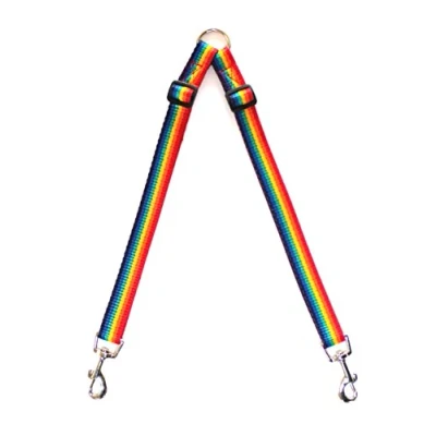 small dog ADJUSTABLE 2 lead Double Twin Coupler Rainbow Multi colour Walk Two dogs on one Made in the UK