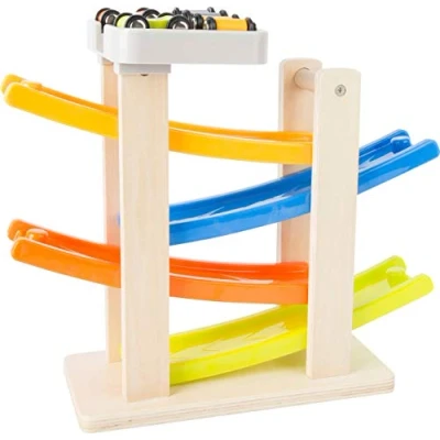 Promotes understanding of the principle of cause and effect Made of painted wood, tracks made of robust hard plastic Incl. 4 colourful race cars Watching the speedsters race around is fun for both young and old An idea birthday, Easter, or Christmas gift!, Manufacturer: Small foot by Legler