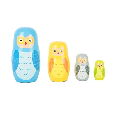 Small Foot 10620 Matrjoschka Owl Figures made of Wood in Four Different sizes and Colours, Teaches hand eye Coordination is Suitable as A Decoration
