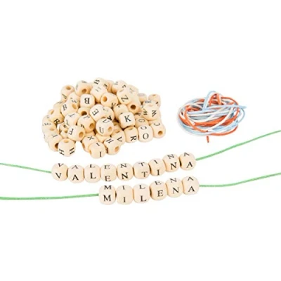 Encourages child's creativity and patience Helps to learn the letters and first attempts to write Includes ribbons for threading the beads Can be worn as a necklace or bracelet or used to decorate 300 wooden letter cubes. Colour may vary due to the appearance of the screen., Manufacturer: Small Foot by Legler