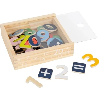 A total of 40 parts, the numbers from 0 to 9 and additional arithmetic operators Improves the understanding of numbers Promises valuable, educational play Made of painted, magnetical plywood In a practical wooden box, Manufacturer: Small Foot by Legler