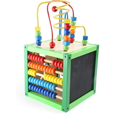 A colorful motoric cube with five sides of spring-like gaming fun Motoric loop, slide rule, number recognition board, Maltafel and sliding game offer a variety of gaming experiences. To promote motor skills and dexterity Made of robust wood Size: 20 x 20 x 36 cm, Manufacturer: small foot by Legler