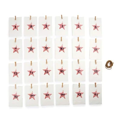 24 white, numbered bags - ideal for the advent calendar Each sachet is attached with a small peg Incl. ribbon and peg