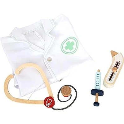 A complete play set with a doctor's coat and play medical equipment including a syringe, stethoscope, and thermometer This doctor's coat has two practical external pockets and snaps for easy putting on and taking off The plunger of the syringe automatically extends back after being depressed Particularly realistic role play with the adjustable temperature indicator on the thermometer Ideally suited for role play, costume parties, Carnival, and Mardi Gras, Manufacturer: small foot
