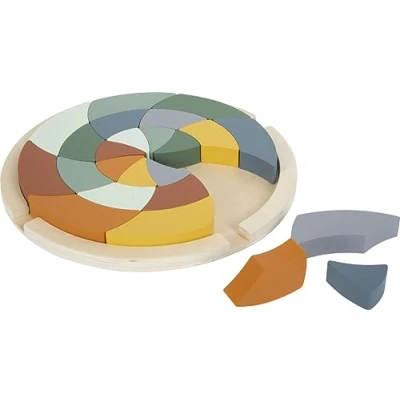 A puzzle comprised of a wooden frame and 24 colourful puzzle pieces for creative construction of mandala motifs The robust blocks can be used in many different ways, including outside of the puzzle frame for free play and stacking Multifunctional, Montessori-inspired colours game that encourages fantasy-filled play and promotes children's intellectual development Designed with modern colours that make the wooden blocks a decorative eye-catcher in the nursery Height approx. 2.5 cm, Ø ca. 28 cm, Puzzle piece approx. 10 x 3.5 x 2 cm, Manufacturer: small foot
