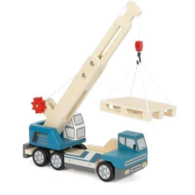 small foot crane Lorry with Pallet, wood, toy truck for kids, 360 turning and extras, age 2+ years, 12639