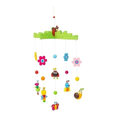 A mobile that offers fun, diversion and relaxation, even in a baby's first few months Includes a bee, a snail, a ladybeetle, a butterfly, an ant and a flower The moving, cutely designed motifs are real eye-catchers over the changing table or the crib Manufactured from high-quality wood Approx. 26 x 26 x 54 cm