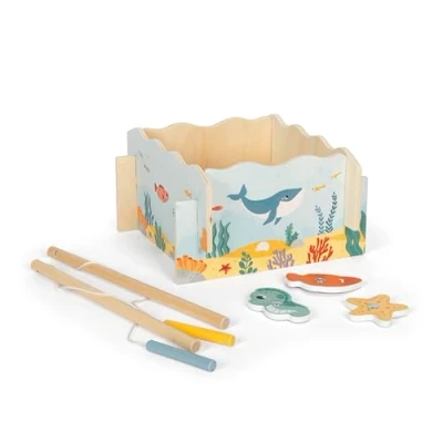 Small Foot fishing Game, wood, with 2 magnetic poles, motor activity toy for kids aged 2+ years old, 12627