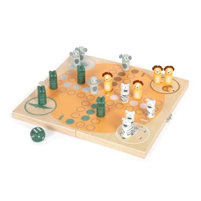 The classic game of Ludo made of sturdy wood in a unique "Safari" look Ideally suited for up to four players Foldable game board serves as a storage box for the game pieces and dice Great game for when you're on-the-go and as a travel game Game board approx. 26 x 24 x 1.5 cm; Game piece: approx. 1.5 x 1.5 x 3 cm, Manufacturer: small foot