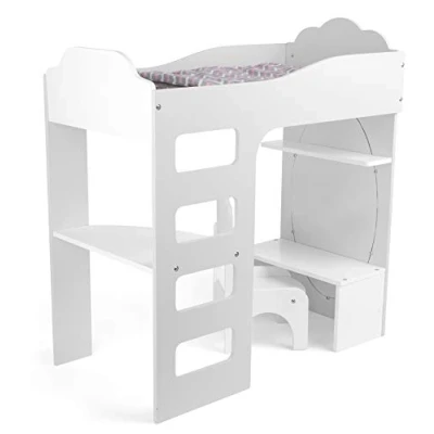 Lovely loft bed for dolls made of solid wood and with matching sheets in delicate colours The raised bed can be easily reached thanks to the integrated ladder on the side Under the bed there is a desk with chair and plenty of space thanks to several compartments On the outer side of the loft bed there is a large oval mirror where the parents of the dolls can look at each other With this doll accessory you promote children's role play, Manufacturer: small foot