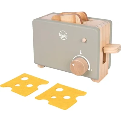 Robust toaster in a stylish grey with accessories for the play kitchen High-quality play set with two slices of toast and two slices of cheese made of felt A temperature control knob with a clicking noise and a pop-up function ensure a particularly realistic role-playing experience The kitchen accessories promote the development of young chefs' everyday skills and social skills Toaster approx. 20 x 7.5 x 12 cm, Manufacturer: small foot
