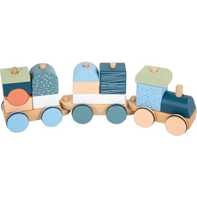 A modern train made of FSC 100%-certified wood in an arctic look 2-in-1: also usable as a stacking game and insert game with the insertable blocks Insertable shapes can also be used separately as wooden building blocks Motor activity toy for training hand-eye coordination and motor skills Approx. 33 x 10 x 7 cm; Train locomotive 12 x 10 x 7 cm, Manufacturer: small foot