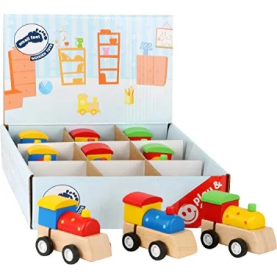 FSC 100%: This product is entirely comprised of wood from FSC-certified forests Playfully promotes the development of children's motor skills Can be wound up - the locomotives then drive themselves around 9-piece set - high-contrast, brightly coloured locomotives in three different designs are sure to enchant young train fans Ideally suited as a gift for children's birthdays, weddings or for the Advent calendar, Manufacturer: small foot