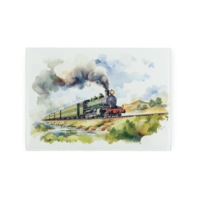 Small Glass Worktop Saver Steam Train Smooth Kitchen Chopping/Cutting Board Protector with Non Slip Feet 28.5cm x 20cm (11" 8")