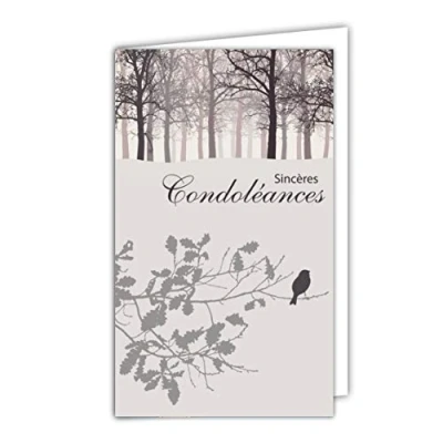 Small Grey Greetings Condolence Card Dead Deuil Landscape Peaceful Sunset Flying Birds Doves Peace Water Lake Grass Made in France