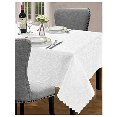 Size: 50"x70" (127cm x 178cm) Colour: White, Material: 100% Polyester Features: This Jacquard Tablecloth are elegant in look, nice design and great for any household. Easy to clean up and ideal for any occasions with this high quality made of 100% Polyester. Quality: We ensure our table cloths are of the highest quality and we offer luxury end table clothes to the general public Washing Instructions: Wipe Clean with Warm Water