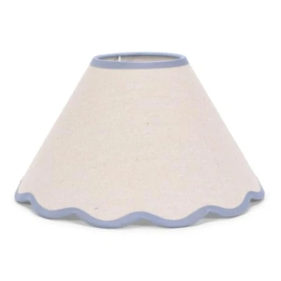Small Natural Linen Tapered Light Shade with Blue Scallop Trim for Table Lamp LED Bulb Included