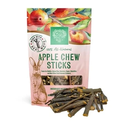 Natural apple wood chew sticks for healthy gnawing Supports natural chewing and boredom relief Suitable for rabbits, guinea pigs, hamsters, gerbils, mice, rats & chinchillas Use in playpens & cages; rotate regularly for interest 80g pack; sizes vary naturally