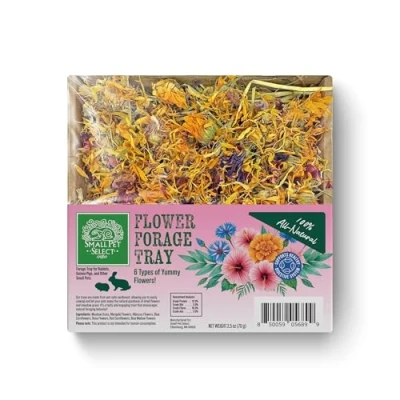 Small Pet Select Flower Forage Tray, Natural Treat with Marigold, Rose, Hibiscus and Meadow Grass for Rabbits Animals