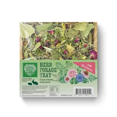 Small Pet Select Herbal Forage Tray with Grazing Grass, Parsley, Echinacea and Birch Leaves, Natural Treat for Rabbits Animals