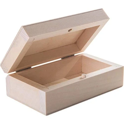 Small Rectangular Wooden Box with Lid & Bolt Closure 10 x 6 3.7 cm Gadgets Trinket Keepsake Memory Jewellery Gift Craft Storage Unpainted Untreated Plain Linden