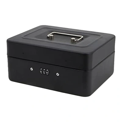 SIZE : The size of the cash boxes is 20*16*9.5cm DURABLE AND UNBREAKABLE: The cash boxes is unbreakable in our daily life due to strong metal material. Besides, the inner removable money tray is so sturdy built that you have no reason to worry about the security of your items. ADVANCED COMBINATION LOCK: The locking device consists of a 3-number combination lock ,which contributes to protect your valuables.It is unnecessary for you to be afraid of losing your keys results from the well-designed code system, which can be simply set or changed. REMOVABLE MONEY TRAY: The inner cash tray of the storage box is made up with six compartments, so your cash, coins and keys are able to be accepted separately. Besides, there is huge space for you to take care of checks, receipts and valuables at the bottom of the box. WIDE MULTIPURPOSE APPLICATION: The locking cash box is capable of varied occasions. No matter where you are, for instance, school, office, factory, supermarket and anywhere else, the lock box could actually breathe new life into your lifestyle.