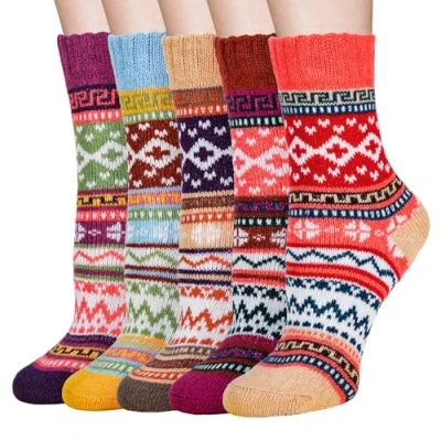 MATERIAL & BENEFIT: Our women winter warm socks are made of wool, polyester, rabbit and spandex. The women wool socks are soft,durable. Keeping your feet warm and healthy during cold weather is important to your health,which is why we need soft,thick warm socks. SIZE : Our women socks are about 23 to 26cm, one size fit for most size from UK 4 to UK 8 , EU size 37-42. These thick knit socks are elastic and perfectly make it suitable for your feet. So everyone can enjoy warm,toasty feet. APPLICATION : A mix of bright prints makes these socks flirty and fun,It's a great present for winter day various colors can easily follow your daily collocation, you can wear them as office,school,hiking,outdoor,sport,home,work, Christmas socks in Spring,fall,winter season or in any cold weather areas. 5 IN 1 PACK : Each package including 5 pairs women winter socks as picture show. The stylish style and colors of these casual socks can easily follow your daily. EXCELLENT GIFT CHOICE : These bright and colorful women socks make use of primary colors and other bright hues. The designs you will find here are vintage socks, gift socks, colorful patterned socks,winter or spring socks, gift for Crazy Socks Day,various colors socks.