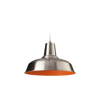 Smart 1 Light Dome Ceiling Pendant Brushed Steel, Orange Inside, E27