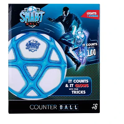 Smart Ball SBCB1B Football Gift for Boys and Girls from 6 Years Old Kick Up Counting Power with Bright Lights Sounds Training Children, White Blue